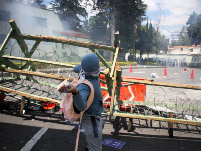 Derriban puerta de campo militar en protesta por caso Ayotzinapa