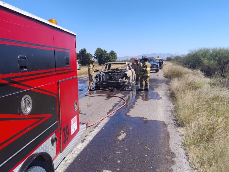 Bomberos atienden incendio en camioneta