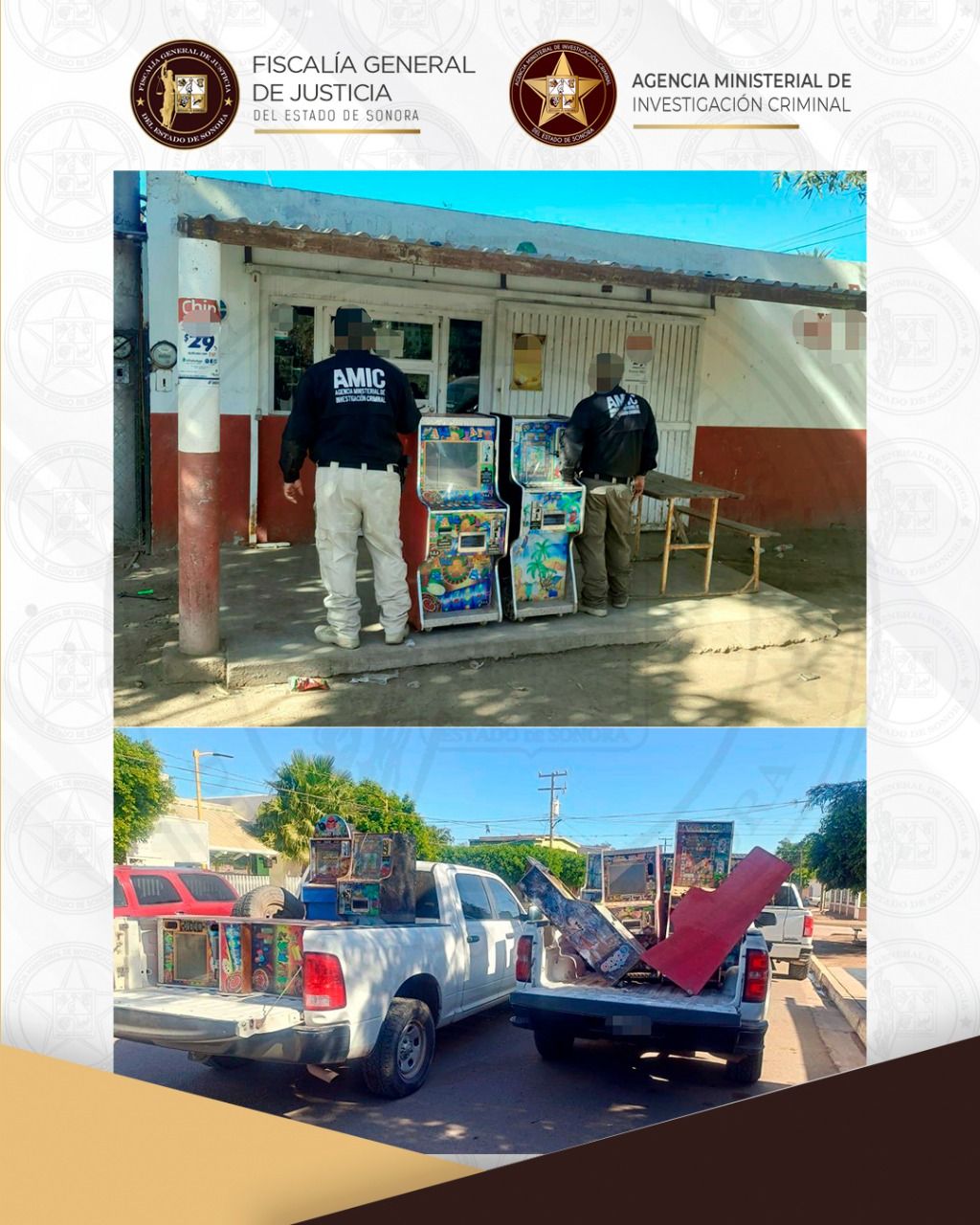 La Agencia Ministerial de Investigación Criminal (AMIC) realizó un operativo de verificación en diferentes sectores en San Ignacio Río Muerto y Bácum, lo que permitió el aseguramiento de 13 máquinas tragamonedas instaladas sin autorización en establecimientos comerciales.