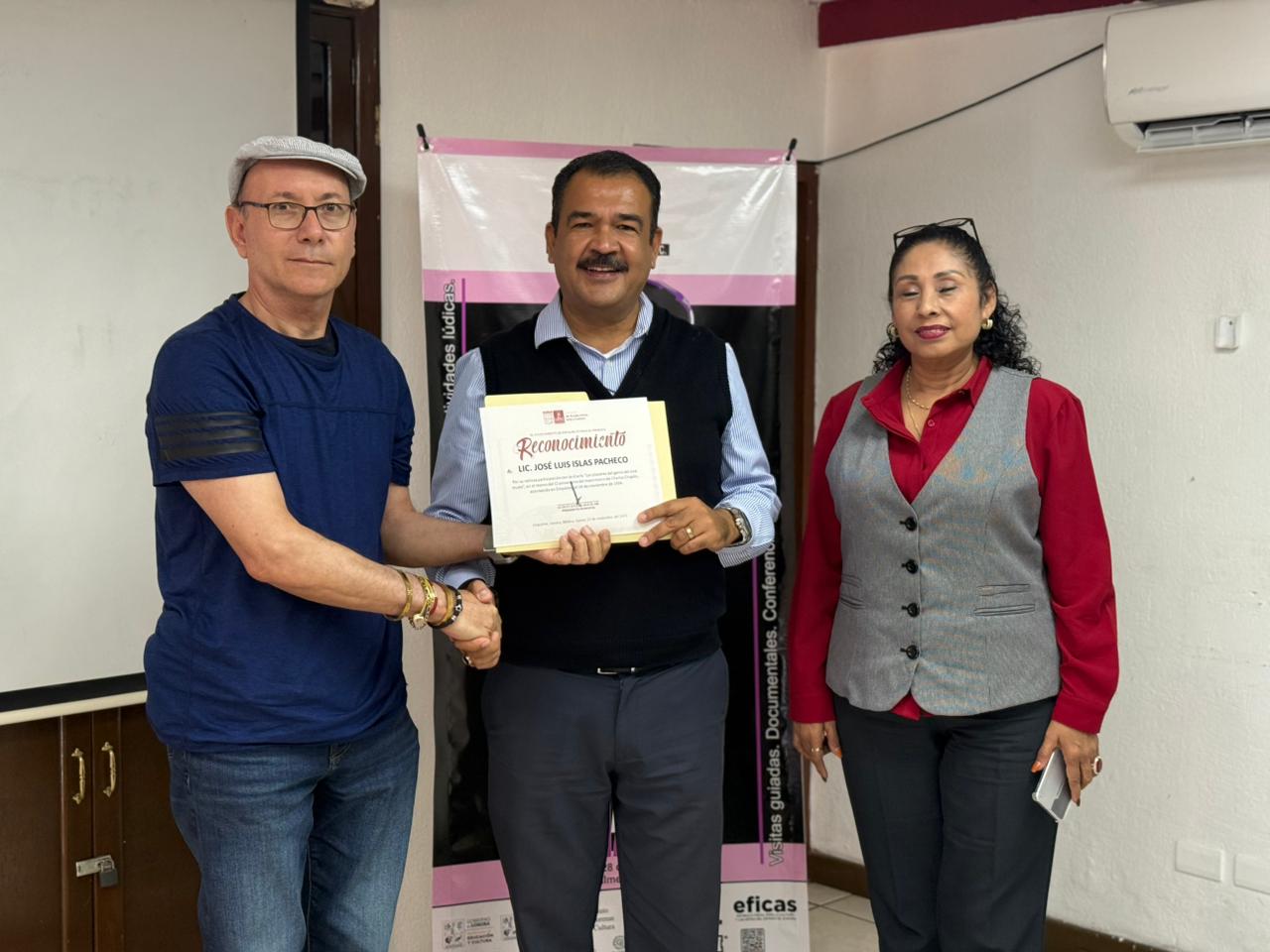 La actividad fue impartida por el Consejo Municipal de la Crónica, encabezado por el Lic. José Luis Islas Pacheco, cronista municipal y director del Mufer quien narró la vida del Chaplin en la ciudad de Empalme y detalles de sus actividades y vida personal.