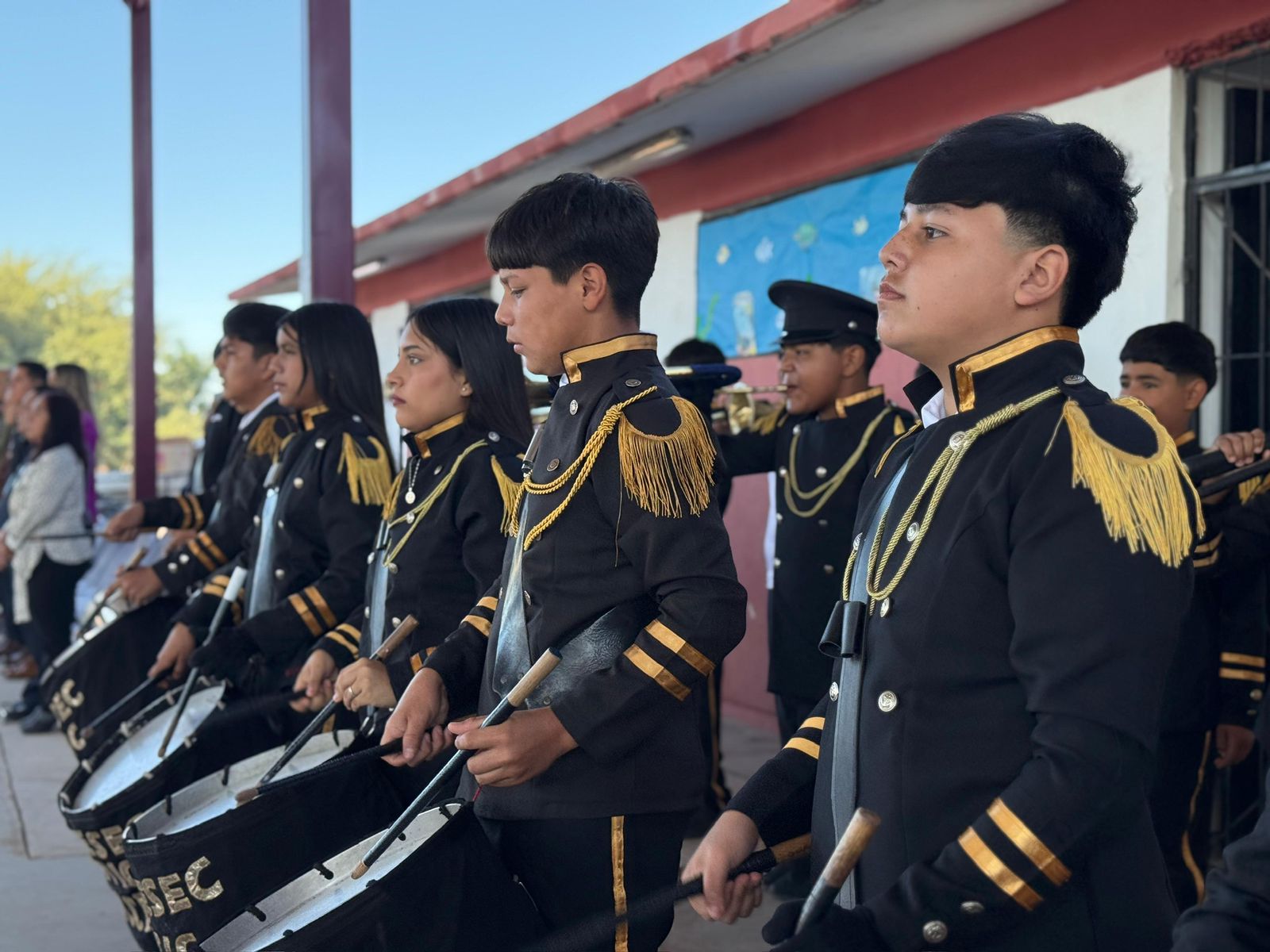 El programa incluyó presentaciones artísticas por parte de alumnas y alumnos, entre ellas demostraciones de escolta y bailes folclóricos.