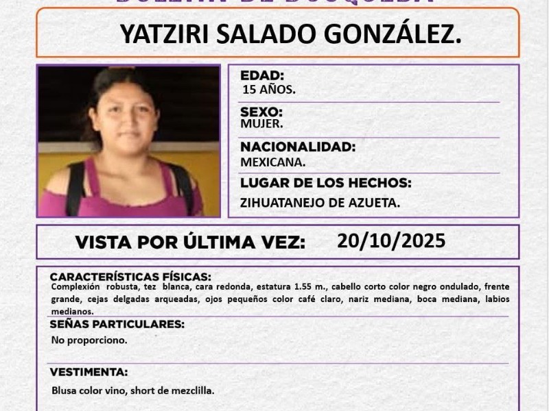 Activan Alerta Violeta por desaparición de menor en Zihuatanejo