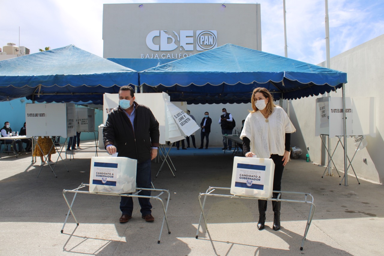 El Gobernador de BCS Carlos Mendoza Davis, acompañado de su esposa, la sra. Gabriela Velazquez de Mendoza emitieron su voto en el proceso interno del Partido Acción Nacional para la elección del candidato a la gubernatura.