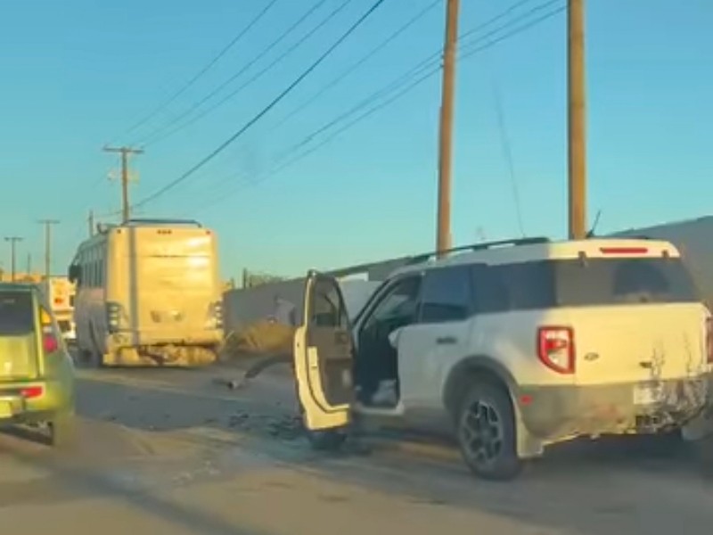 Dos lesionados tras choque entre camión de transporte público y camioneta