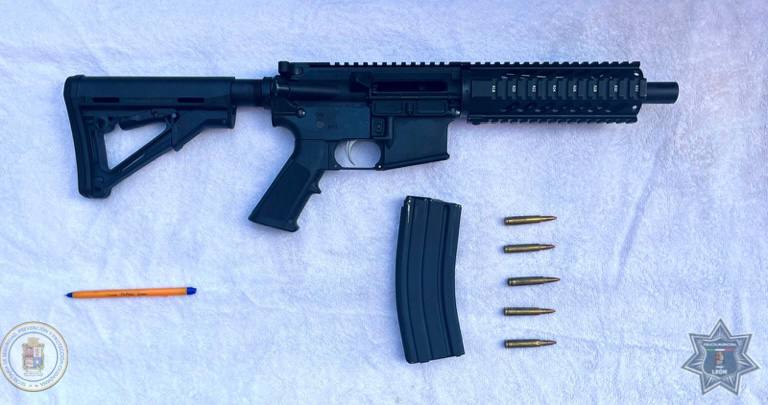 Durante un recorrido de supervisión sobre el bulevar Aeropuerto, cerca de un negocio, los oficiales detectaron una camioneta Toyota RAV4 negra con el motor encendido y un arma de fuego visible en su interior.