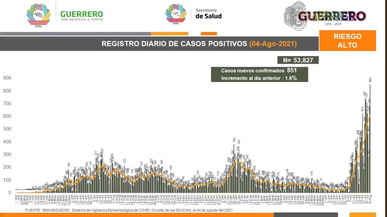 Se volvió a romper el récord en la detección de nuevos casos de COVID19 en 24 horas, pues este miércoles 04 de agosto se reportaron 851 personas infectadas de coronavirus, que representa un incremento del 1.6 por ciento en relación al día anterior.