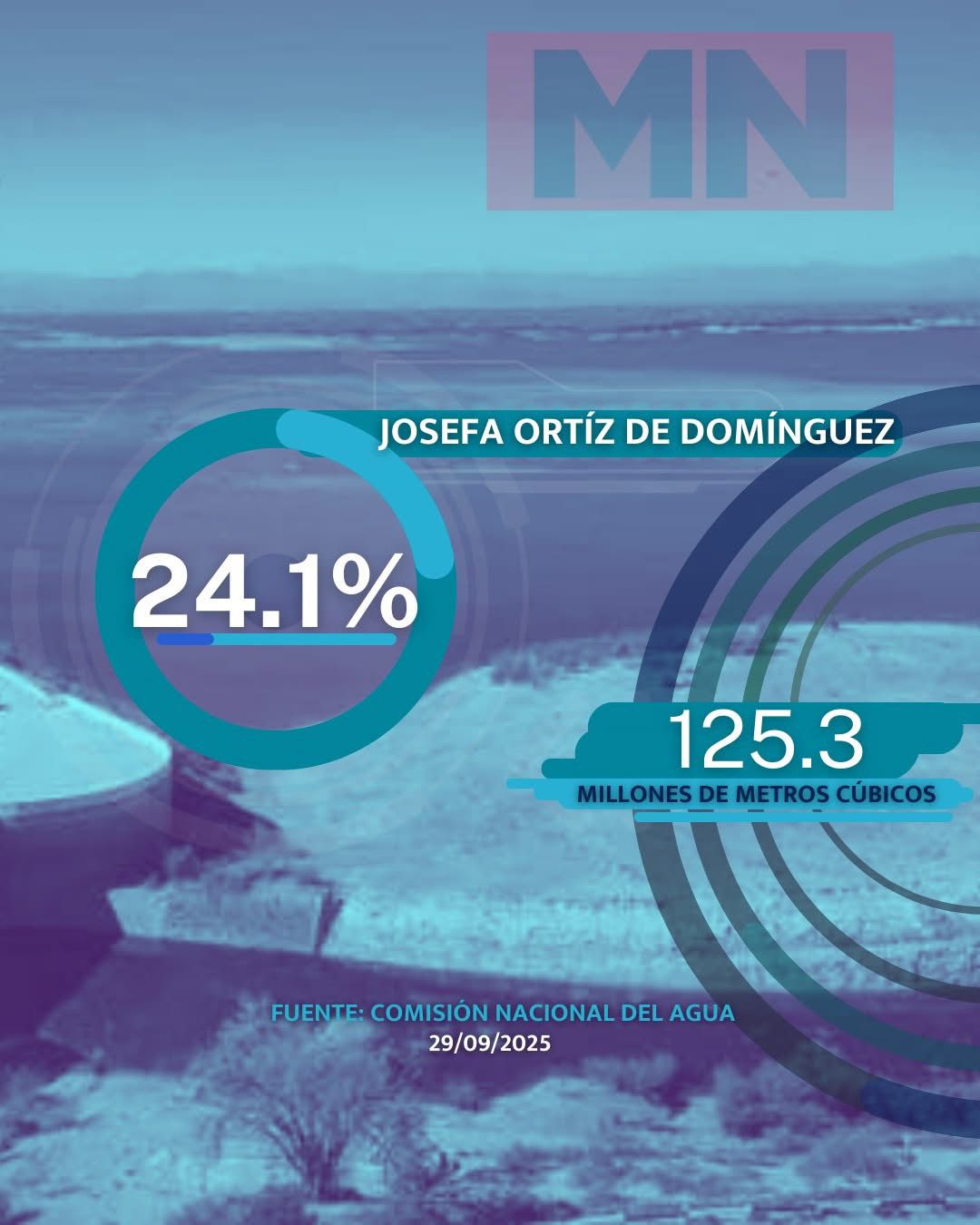 Mientras que la Josefa Ortiz de Domínguez se encuentra en 24.1%, con 125.3 millones de metros cúbicos almacenados.