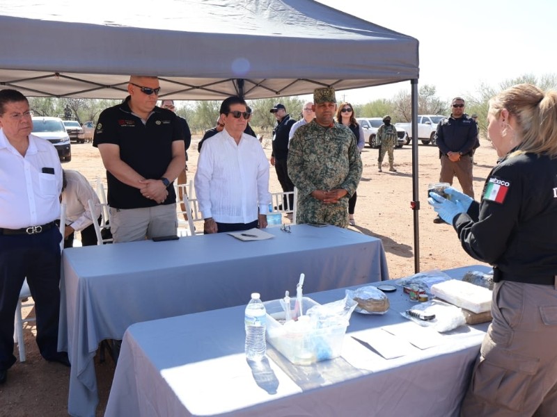 La droga asegurada forma parte de los trabajos coordinados con del Gabinete de Seguridad del Gobierno de Sonora y de acciones donde participaron la Secretaría de la Defensa Nacional (Defensa), Guardia Nacional (GN), Secretaría de Marina (Marina), FGR, Policía Estatal (PESP) y Policía Municipal.