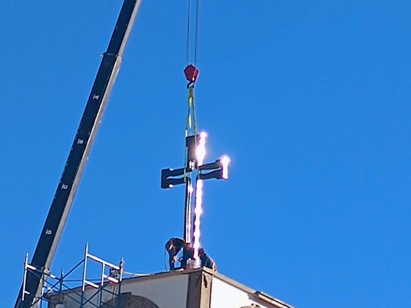 Colocan cruz en lo alto de campanario en catedral de Nogales, Sonora