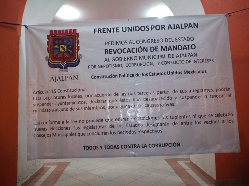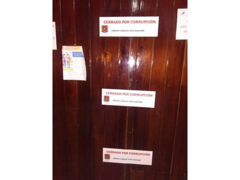 De manera simbólica fue clausurado el palacio municipal de Ajalpan por parte de miembros de la organización denominada "Frente Unidos por Ajalpan", que mediante estas acciones exige la revocación de mandato al presidente con licencia (y ausente de la mirada pública) Ignacio Salvador Hernández, así como de su cabildo.