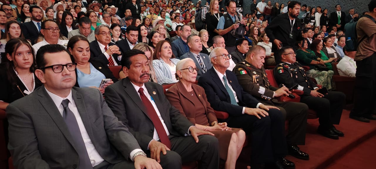 El informe reunió a figuras de alto perfil, como el gobernador del estado Miguel Ángel Navarro Quintero y su esposa, senadores y diputados federales de distintos partidos y presidentes municipales de Nayarit.