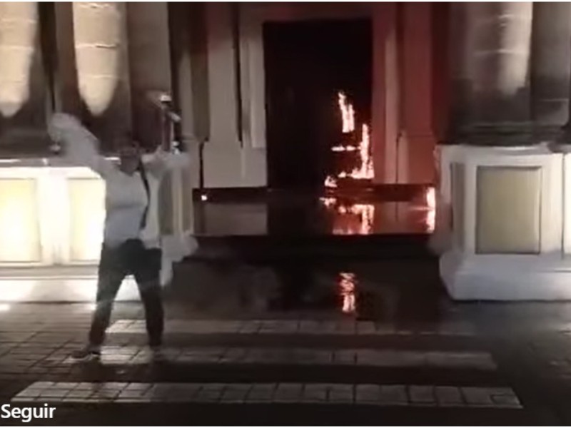 Incendian puerta de Palacio de Gobierno de Nayarit