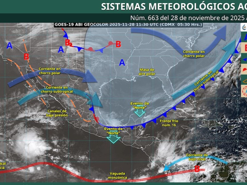 Frente frío 16 traerá lluvias fuertes y frío extremo hoy