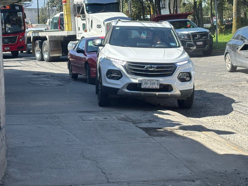 Automovilistas invaden banqueta por mal estado de Avenida Díaz Mirón