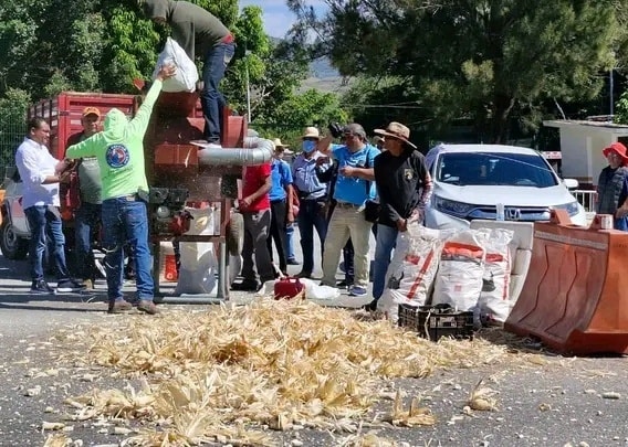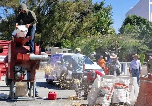 El bloqueo inició a las 11:00 horas y se ponían y retiraban cada 30 minutos. Durante la protesta realizaron una demostración de cómo funciona la desgranadora de maíz, para pedir que así como sale el producto, se los reciba Segalmex, porque el organismo se los pide limpio, lo que les incrementa el costo.