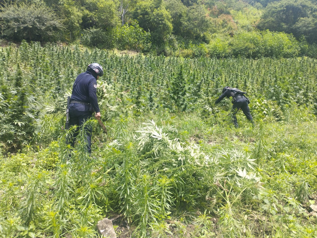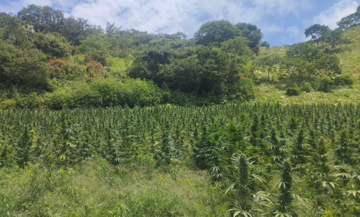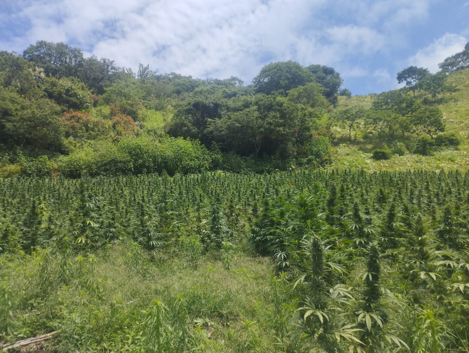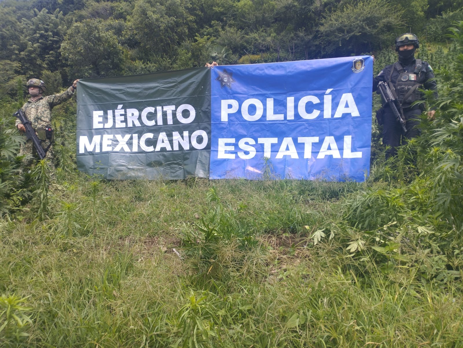 El Ejército Mexicano, Guardia Nacional y Policía Estatal decomisaron 100 kg de marihuana y destruyeron 12 mil metros cuadrados de plantíos en las inmediaciones de la localidad de Iyotla, Leonardo Bravo.