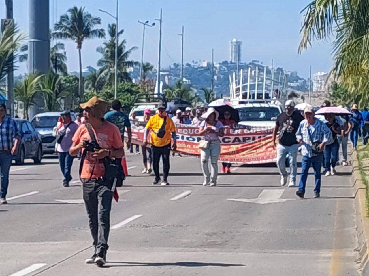 Alrededor de 200 maestros de la CETEG marcharon en la Costera de Acapulco como parte del paro de labores de 48 horas convocado por la Coordinadora Nacional de Trabajadores de la Educación (CNTE).
