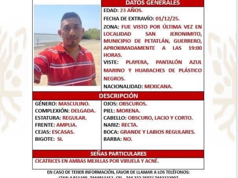 Buscan a joven desaparecido en Petatlán desde el 1 de diciembre