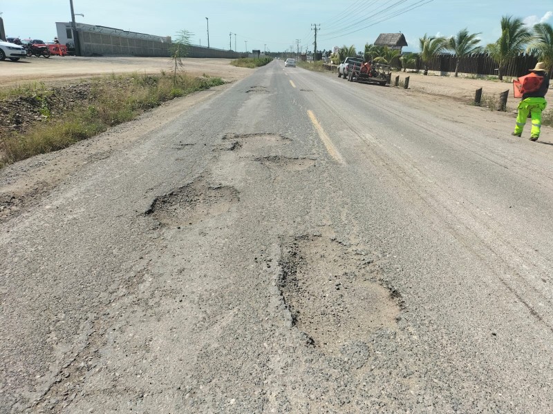 Inicia bacheo en carretera Unión-Lázaro Cárdenas tras fallecimiento de motociclista