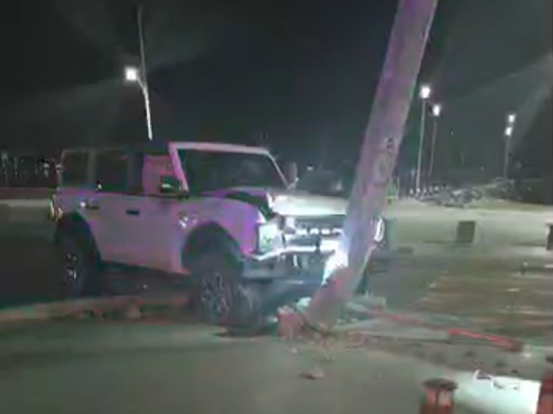 Conductor en aparente estado de ebriedad choca contra poste de seguridad pública
