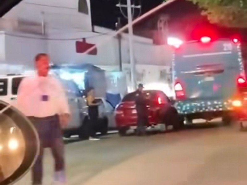 Choque entre vehículo particular y camión urbano en colonia Centro
