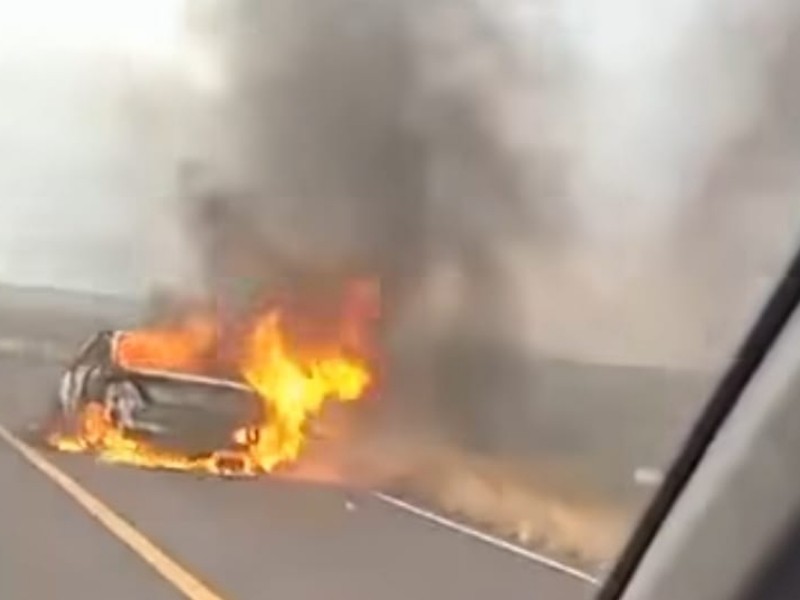 Vehículo calcinado y abandonado en carretera transpeninsular La Paz-Ciudad Constitución