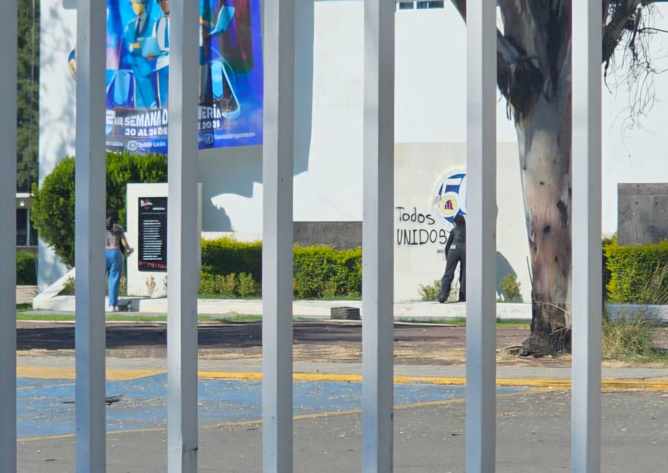 En muros y pasillos del campus se pueden leer mensajes como "Sin renuncia no hay diálogo", "No más migajas" y "Exigimos justicia", escritos con aerosol tanto dentro como fuera del complejo educativo.