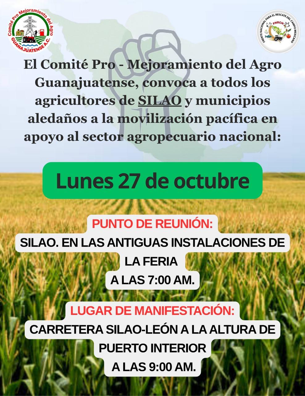 En el municipio de Villagrán se ha convocado también a la movilización, otro punto de la manifestación se presentará en la carretera Celaya - Salvatierra a la altura de la comunidad de El Sauz de Villaseñor, en la salida a San Miguel de Allende a la altura de la gasolinera "La Pirámide" convocan a las 8:00 de la mañana.