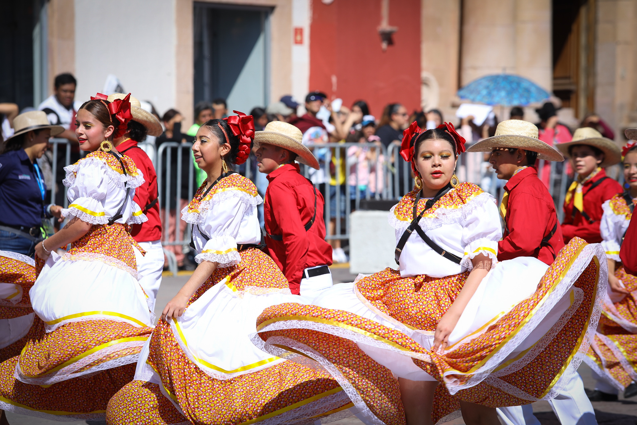 El recorrido inició con honores a la bandera en el Arco de la Calzada, encabezados por la alcaldesa Ale Gutiérrez. Después, 34 contingentes avanzaron por Francisco I. Madero rumbo a la Plaza Principal, en un desfile que mezcló disciplina, historia y celebraciones familiares.