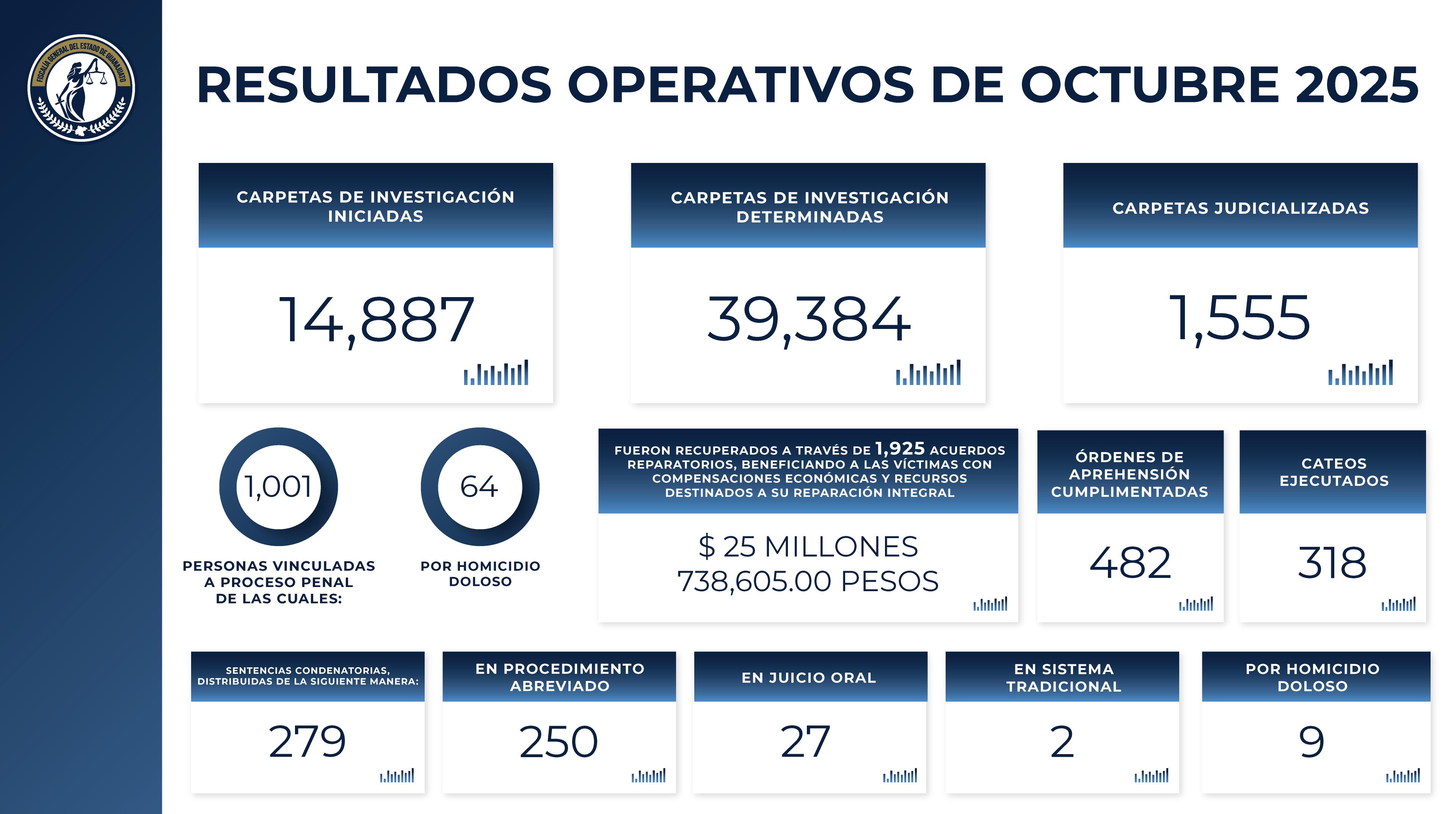 La Fiscalía General del Estado reafirma su compromiso con la justicia, innovación y atención ciudadana, esto tras lograr resultados significativos durante el mes de octubre de 2025, en distintos ámbitos de su labor institucional.