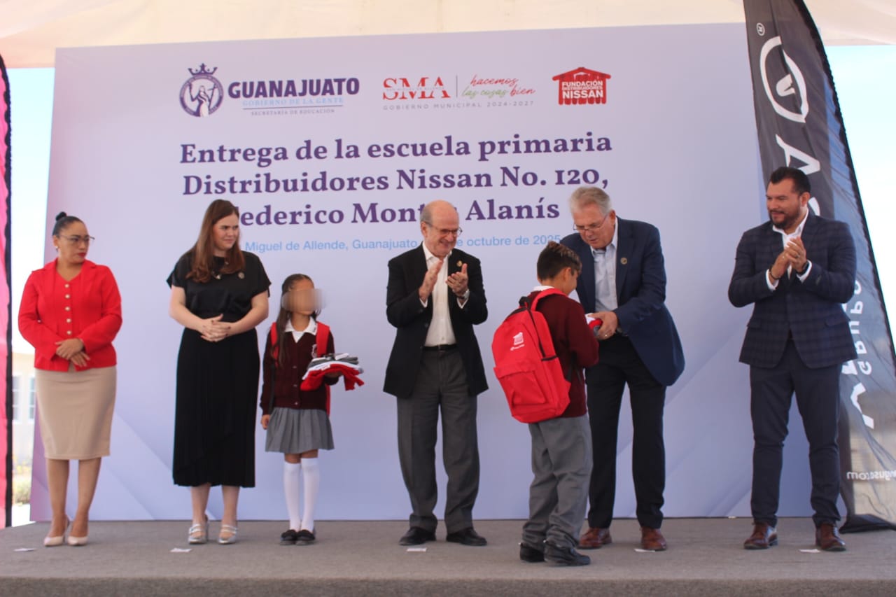 La Fundación Distribuidores Nissan A.C., en alianza con el Gobierno del Estado de Guanajuato y el Municipio de San Miguel de Allende, entregó la Escuela Primaria Distribuidores Nissan Número 120, General Federico Montes Alanís, ubicada en el fraccionamiento La Esmeralda, un espacio que simboliza el poder de la unión entre sociedad, iniciativa privada y gobierno para transformar comunidades.