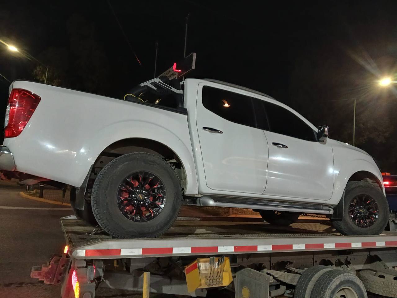 Minutos después, fue localizada una camioneta con vidrios polarizados, que coincidía con las características del vehículo reportado. Se le marcó el alto mediante códigos sonoros y luminosos, y al identificar a los tres tripulantes se hizo una inspección preventiva para eliminar posibles fuentes de peligro.