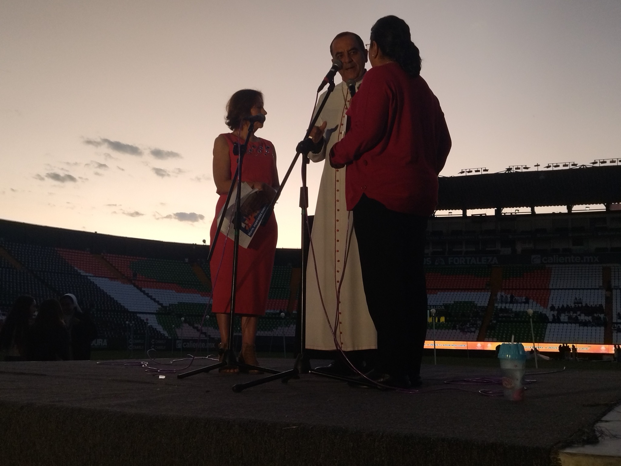En dicho evento, se coloca en el centro de la cancha un escenario, donde se instala la imagen peregrina de la Virgen María y el altar desde donde el arzobispo Jaime Calderón Calderón realiza los rezos correspondientes de las Letanías, así como brindar su mensaje ante los fieles católicos en el que agradeció a todos los participantes su trabajo y devoción.