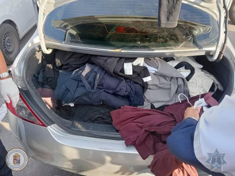 La sorpresa aumentó cuando, tras investigaciones, se ubicó un Nissan Versa gris en el que viajaban las implicadas, donde dentro del vehículo localizaron más de 200 prendas, todas reconocidas por la parte afectada.