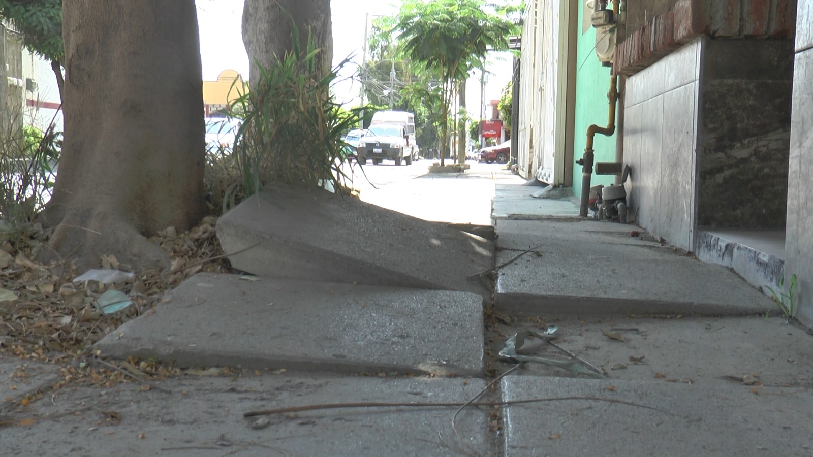 En dicho fraccionamiento, se puede observar como el pavimento de las banquetas esta levantado, los grandes baches que hay en las calles y adoquines sueltos que no han sido retirados en su totalidad.