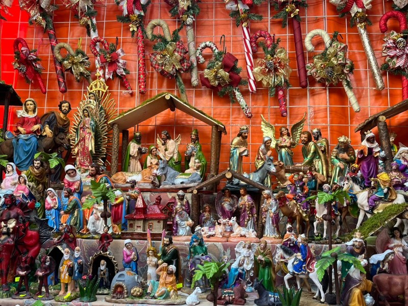 Se instalan comerciantes para vender artículos navideños en la calle Leona Vicario