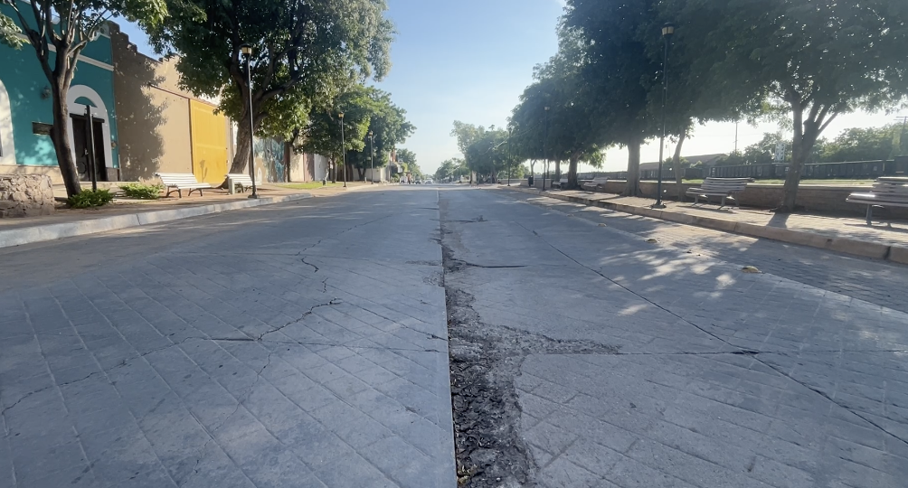 GUAMÚCHIL, SALVADOR ALVARADO.- Habitantes de Guamúchil han señalado el abandono persistente del ayuntamiento de Salvador Alvarado, encabezado por Guadalupe López, respecto al pésimo estado de vialidades turísticas, como la Avenida Ferrocarril.