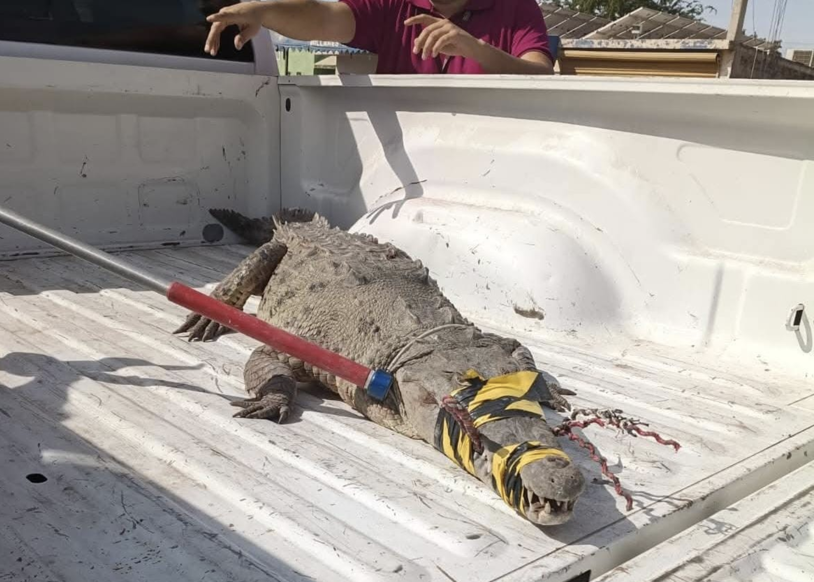 De acuerdo con la información proporcionada por las autoridades a través de cuentas oficiales, los jornaleros detectaron al caiman desplazándose entre parcelas y de inmediato dieron aviso al número de emergencias 911. En respuesta, una cuadrilla de Protección Civil acudió al sitio y, tras una búsqueda minuciosa entre los cultivos, logró ubicar al ejemplar.