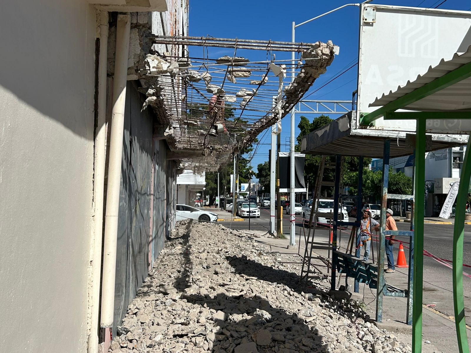 A simple vista, el edificio mostraba daños significativos atribuidos al deterioro del tiempo, ya que se trata de un inmueble antigüo cuya marquesina había perdido estabilidad por lo que la intervención fue realizada para eliminar el riesgo de accidentes.