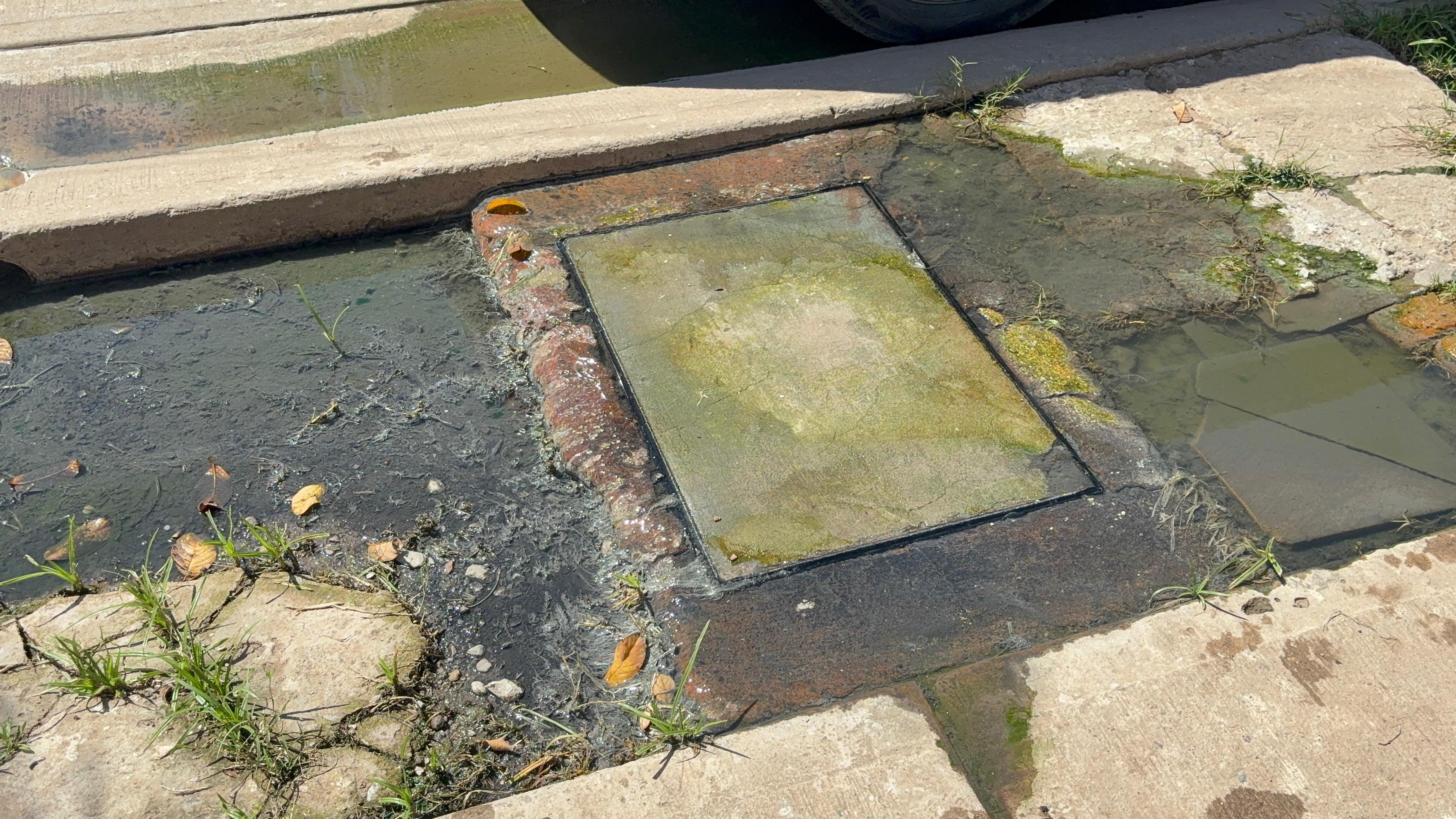 El escurrimiento de aguas residuales no solo afecta la Salvador Alvarado, también se extiende hacia la calle Monzón Molina y llega hasta el bulevar Centenario, agravando el problema en toda la zona.
