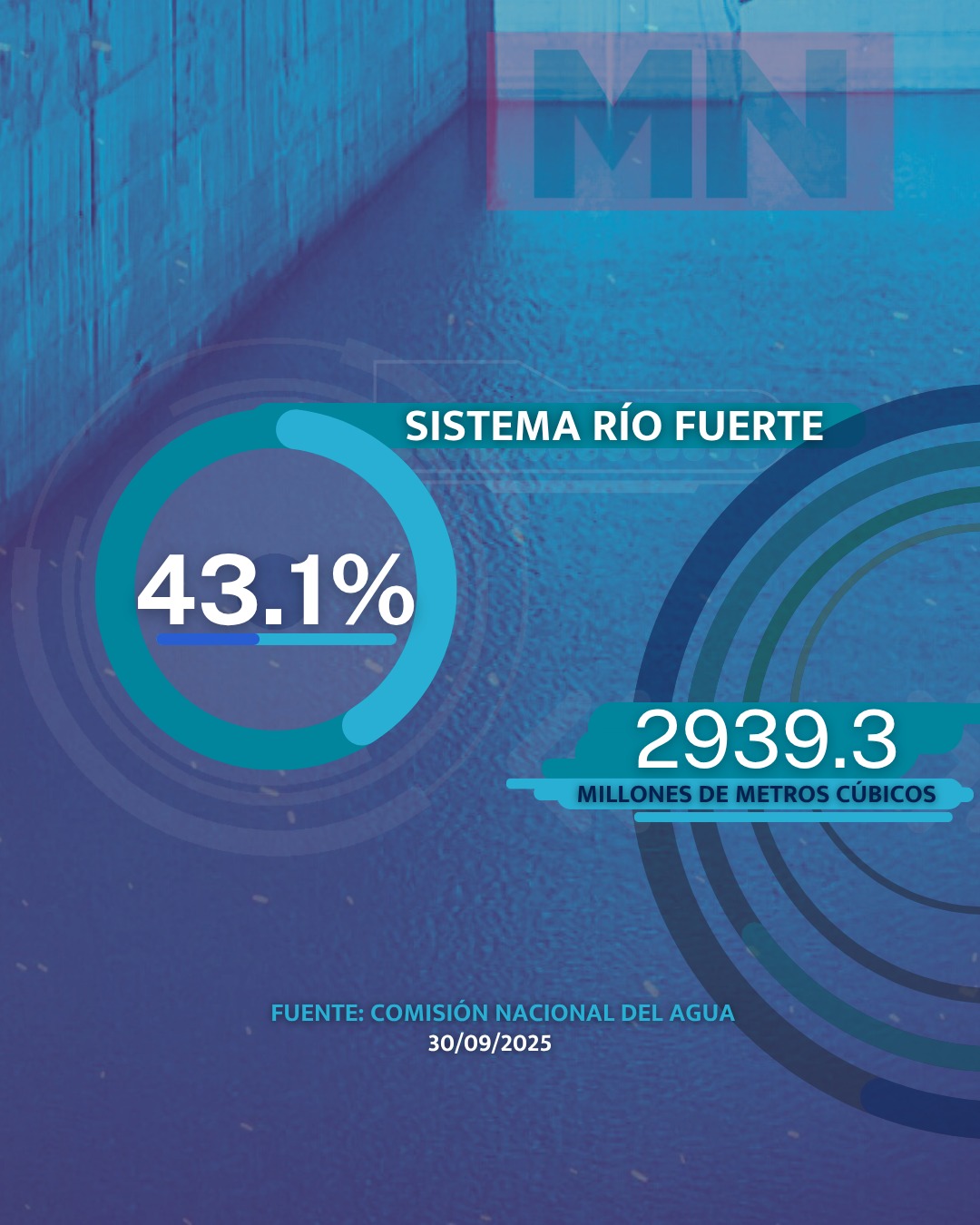 De acuerdo con el informe emitido por la Comisión Nacional del Agua (Conagua) este martes 30 de septiembre, el sistema Río Fuerte registra un almacenamiento total de 2,939.3 millones de metros cúbicos, lo que representa el 43.1 % de su capacidad total de conservación.