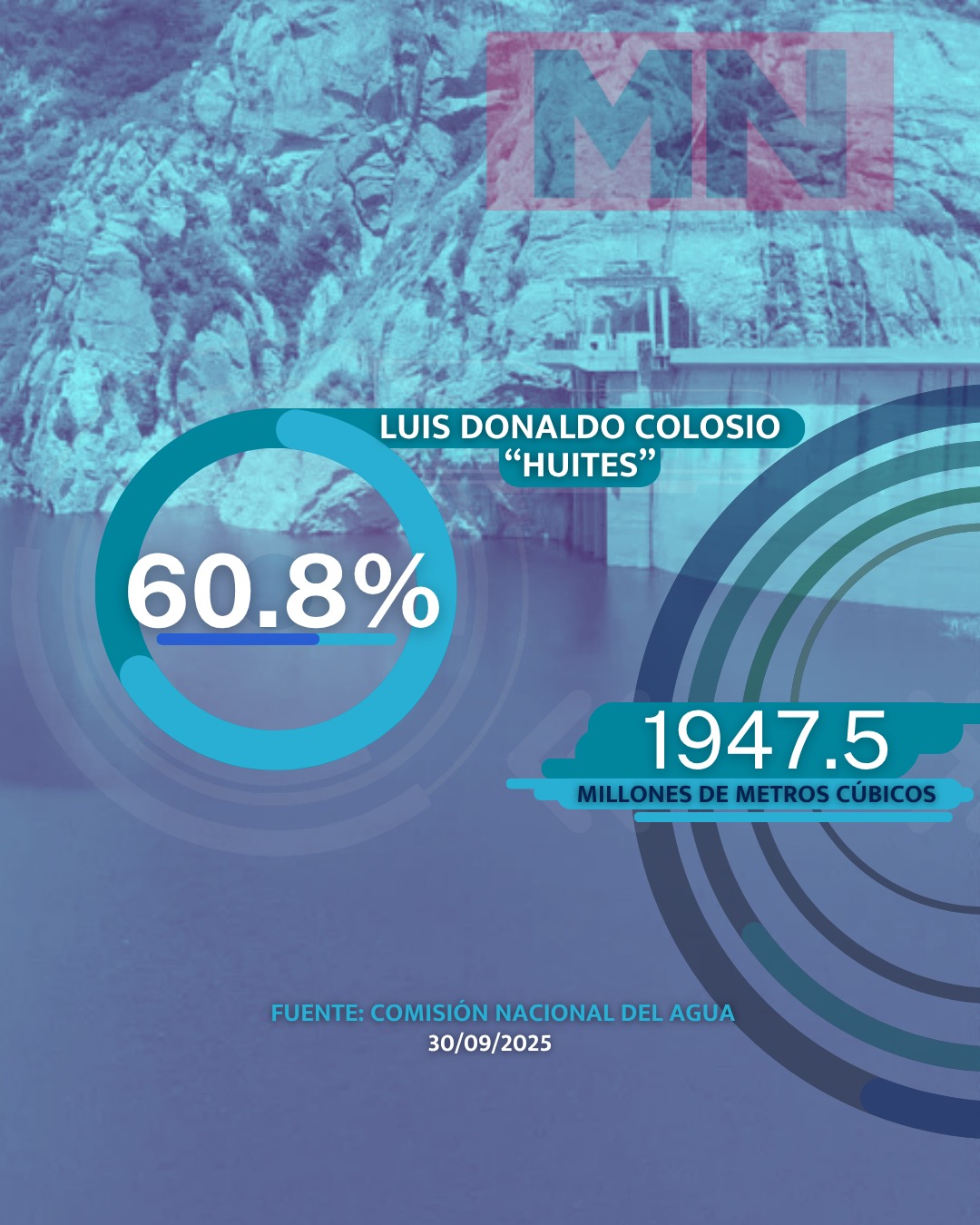 Presa Luis Donaldo Colosio (conocida como "Huites"): Almacena 1,947.5 millones de metros cúbicos, lo que equivale al 60.8 % de su capacidad total de conservación.