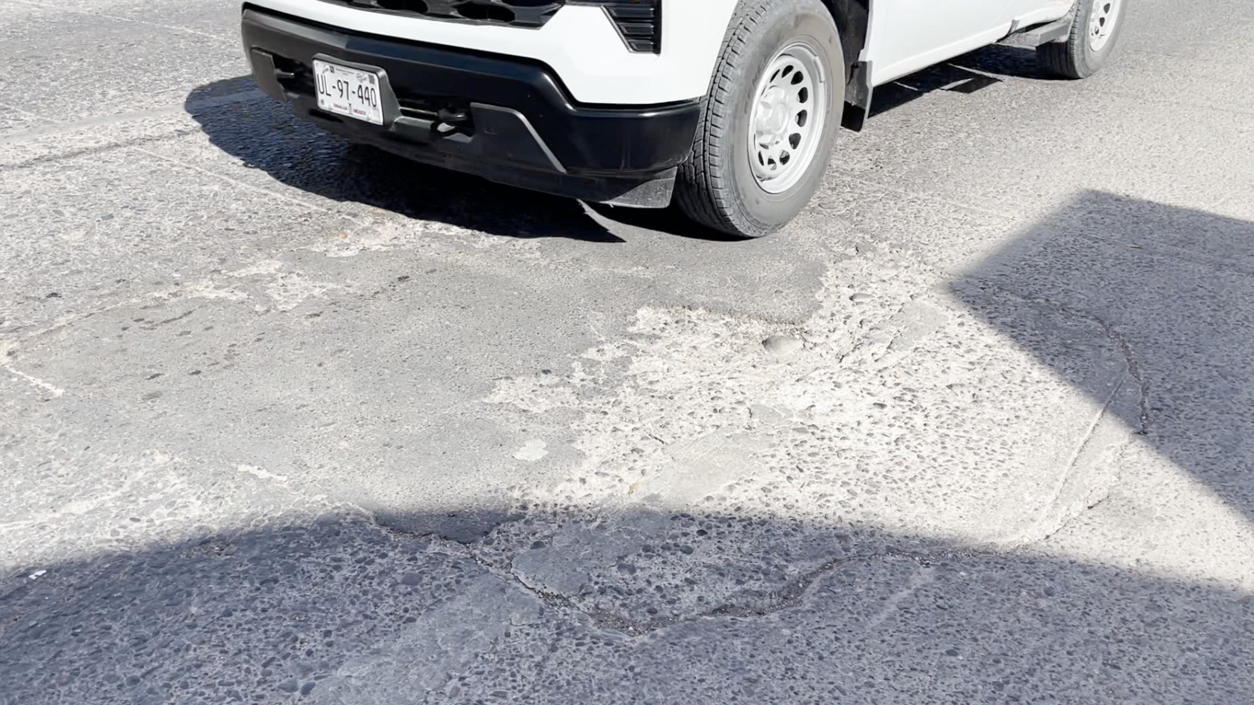 Vialidades clave como la avenida Ferrocarril presentan baches, fracturas y hundimientos que afectan al transporte y ponen en riesgo a los automovilistas. El primer cuadro de la ciudad también muestra daños severos que impactan la actividad comercial y la imagen urbana.