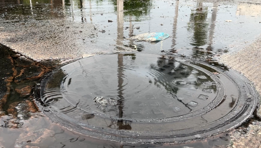 El problema se agrava con cada gota de lluvia: los tapones en la red de drenaje provocan que las aguas residuales no fluyan, se acumulen y formen verdaderas lagunas infectas frente a los hogares.