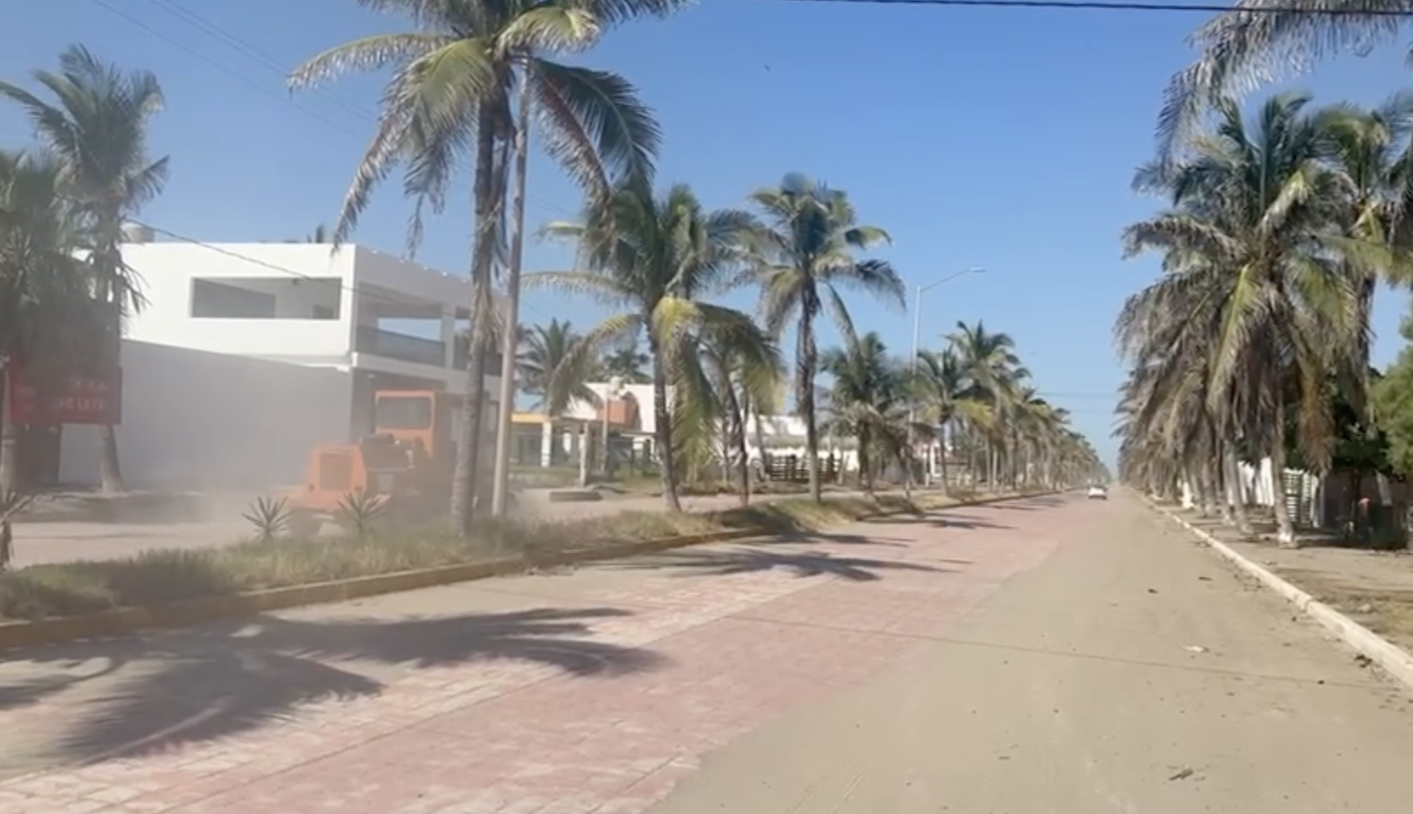 "Hay va quedando ya en condiciones quitando el exceso de arena porque en realidad es mucha, se usaron como 80 dompes, es mucha arena que arrastro el mar hacia dentro, pero con una máquina no vamos a dar abasto, necesitamos otra máquina barredora para avanzar en su limpieza", informó el Oficial Mayor José Humberto Bernal.