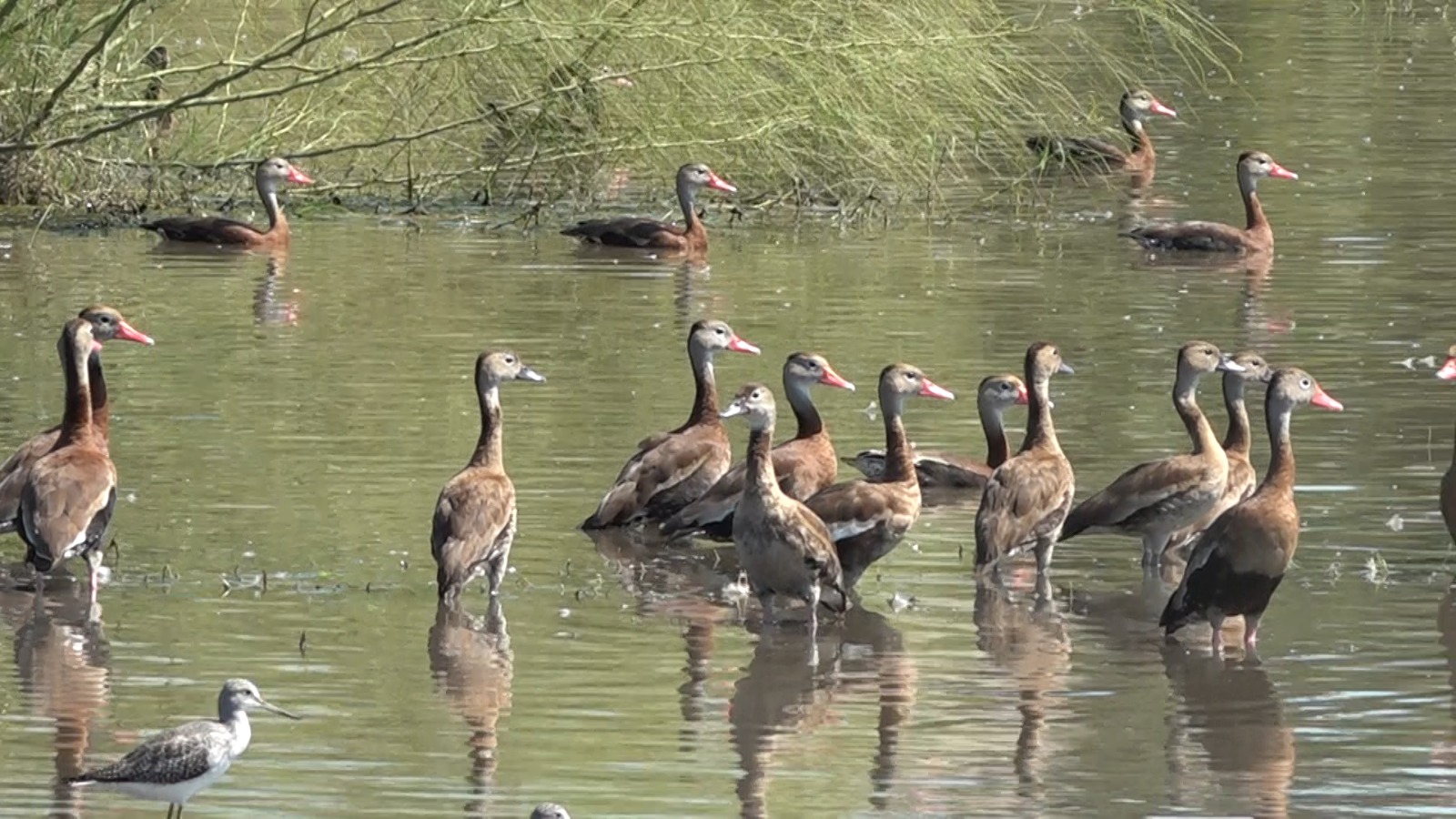 Las recientes lluvias han dejado su huella en el Ingenio Azucarero de Los Mochis, formando enormes lagunas temporales en lo que antes era terreno seco. Este inesperado cambio en el paisaje ha atraído a visitantes muy particulares: patos silvestres que han encontrado en estas aguas estancadas un nuevo refugio donde descansar y nadar.