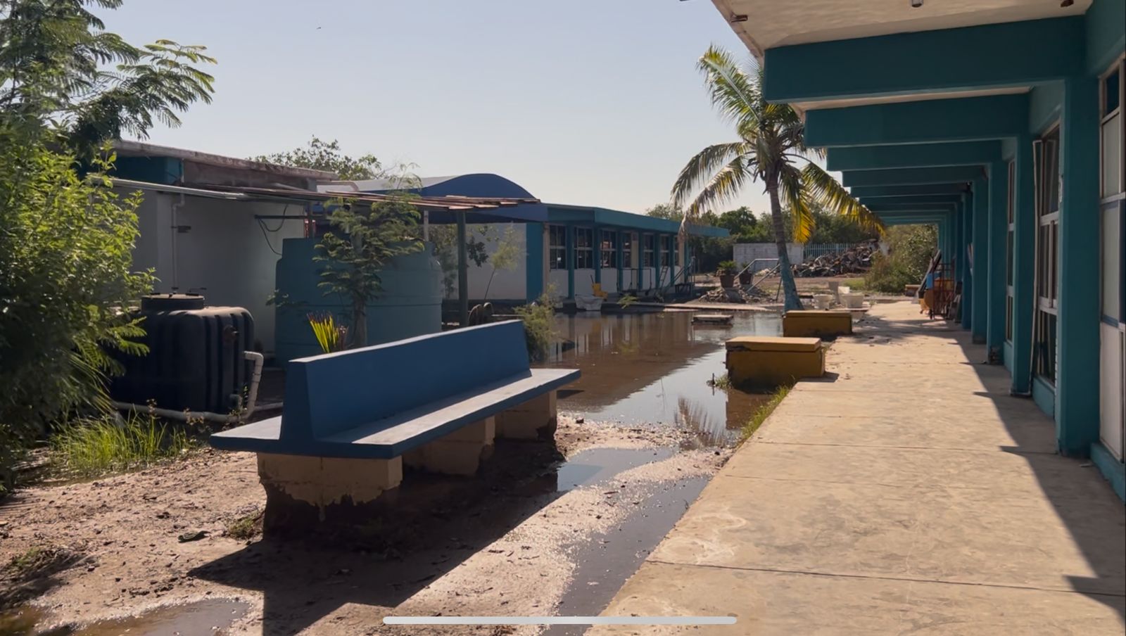 El punto más crítico se presentó en el Centro de Estudios Tecnológicos del Mar (CETMAR), donde el agua ingresó a los patios del plantel, lo que obligó a la suspensión temporal de clases y la evacuación de estudiantes y personal.