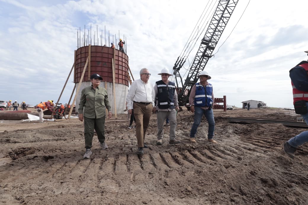 "Andamos supervisando la obra del puente Bellavista, boca del río y las glorias, pues estamos viendo que realmente construir un puente en estas circunstancias, en medio del agua, con agua salada y agua dulce, no es cosa fácil. Vamos a ir observando la construcción de este puente, que va a tardar otros 14 meses más". Expresó el gobernador del Estado.