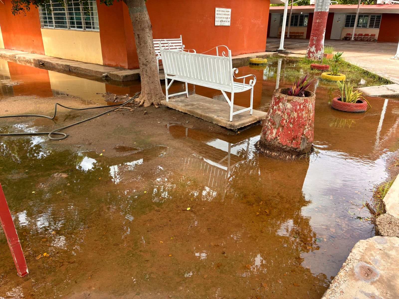 Uno de los planteles más afectados fue la escuela primaria Eduardo Alfonso Garrido Achoi, ubicada en la colonia Magisterial, donde las inundaciones cubrieron los jardines y el agua ingresó a las aulas, provocando daños materiales y retrasos en las actividades escolares.