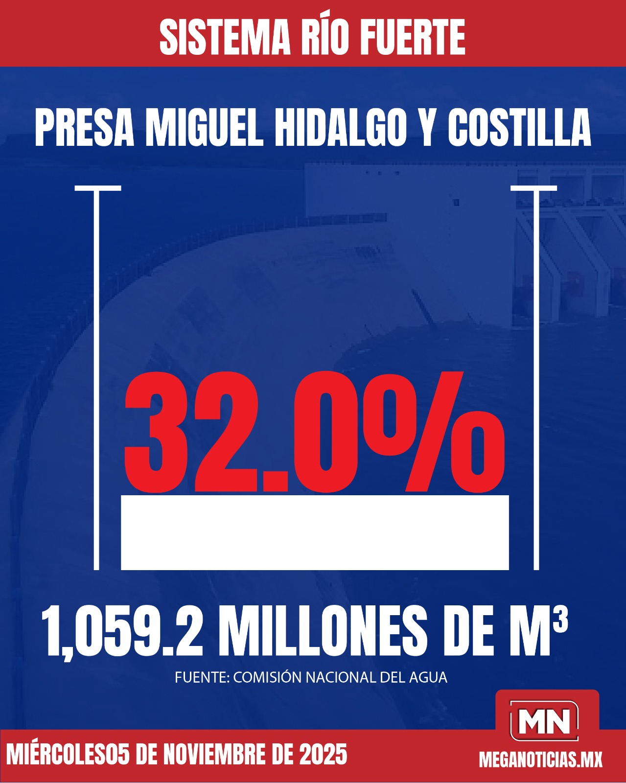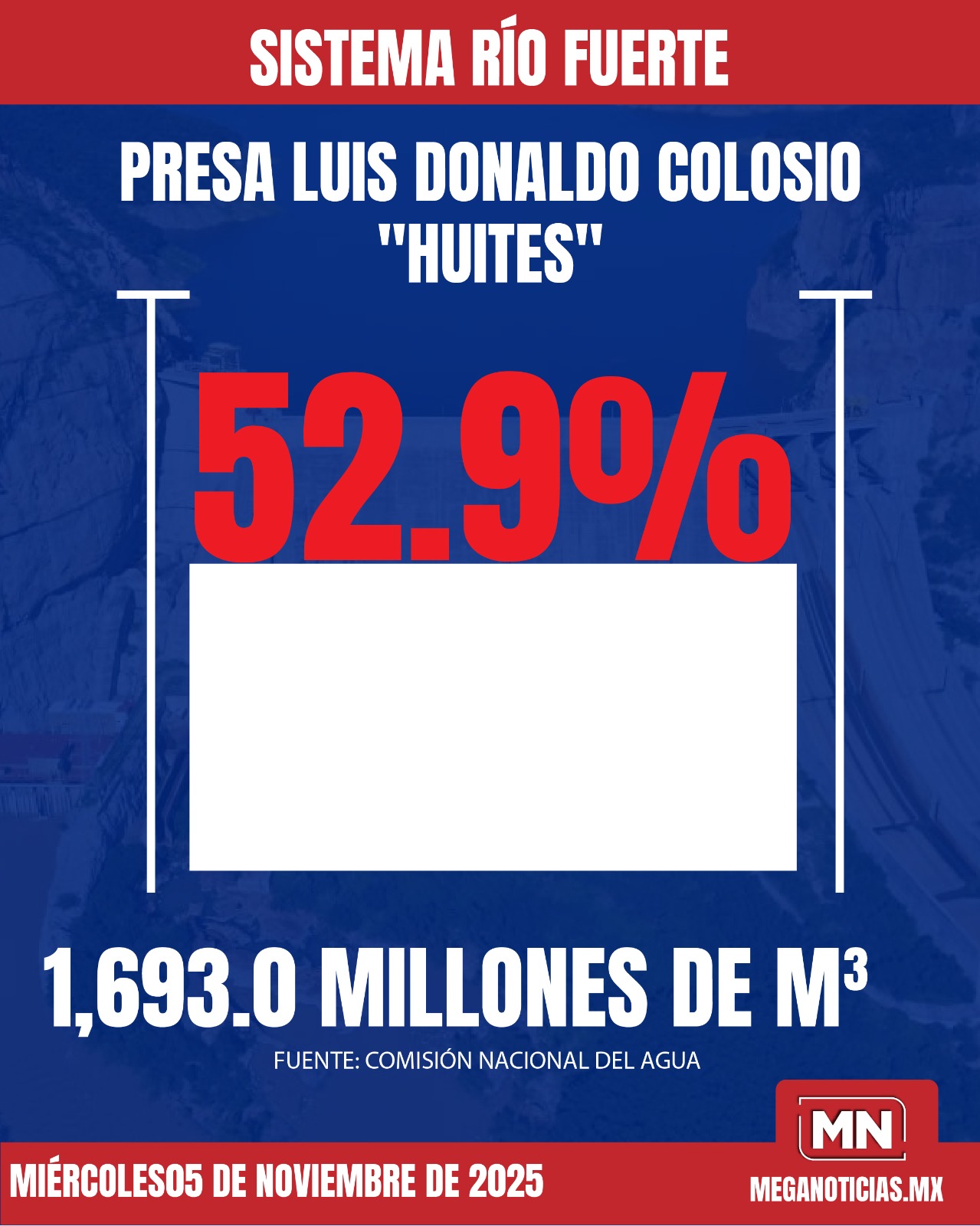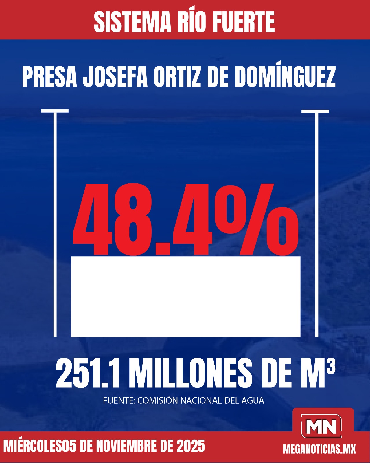 De acuerdo con el reporte más reciente del Organismo de Cuenca Pacífico Norte de la Comisión Nacional del Agua (Conagua), durante las últimas 24 horas las tres presas del sistema Río Fuerte almacenan 3,003.2 millones de metros cúbicos, lo que representa el 42.7 % de su capacidad total.